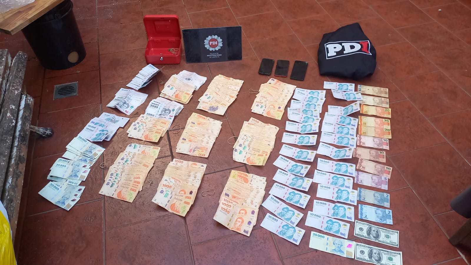 Las tareas investigativas se iniciaron luego de las denuncias por robo de las luces, y tras las medidas dispuestas por los fiscales Carlos Covani y Guillermina Torno, personal del Departamento Operativo de la PDI, Región II, Distrito (Rosario) allanó el domicilio donde funciona un taller mecánico en el que resultaron aprehendidos Horacio Mauricio C., de 62 años, Jonatan Mauricio C., de 34, Mauro Joel C., de 32 y Patricia Claudia C, de 61. La PDI logró dar con seis lámparas led colgantes y una con balastro que estaban siendo utilizadas para el vivero, en el que había 39 plantas de marihuana, 11 frascos de vidrio con marihuana y 8 bolsas de nailon con el mismo contenido. Asimismo, se secuestraron 3 teléfonos celulares, 200 dólares, 199 reales y 1.916.000 pesos argentinos.