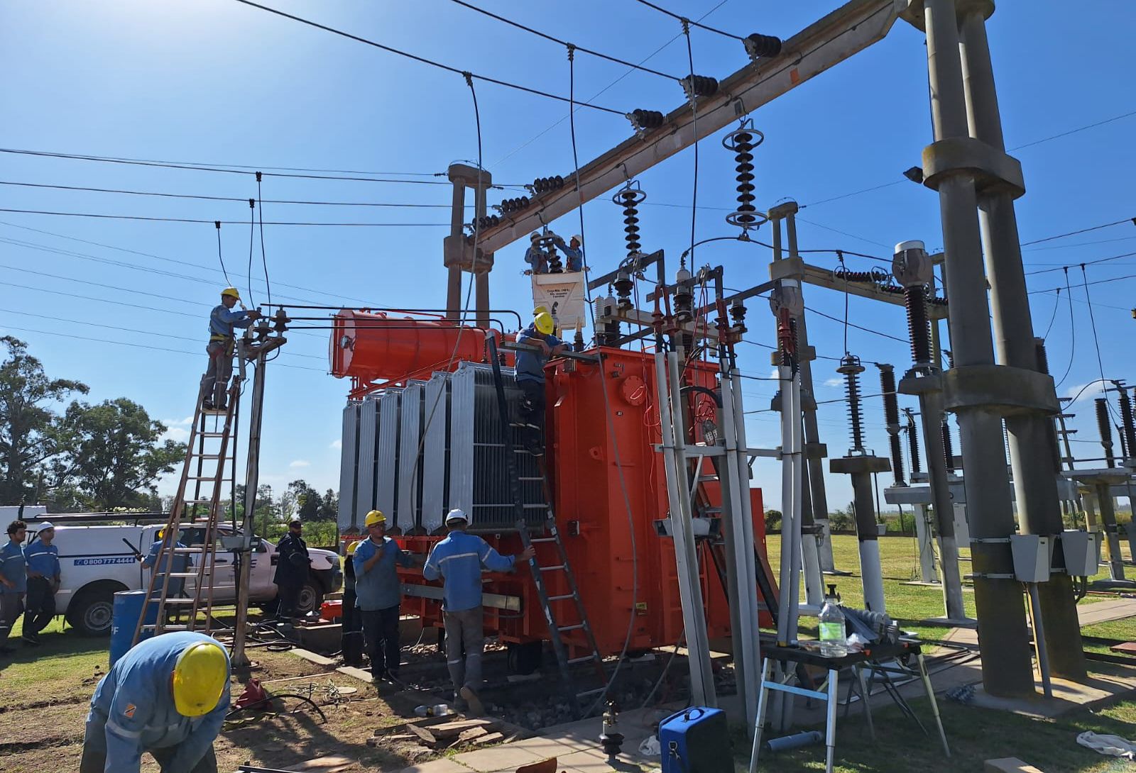 Las tareas consistieron en el reemplazo de un transformador de 15 MVA por uno de 30 MVA, con los correspondientes equipos auxiliares, recambio de conductores y antenas del campo de salida en 13,2 kV.