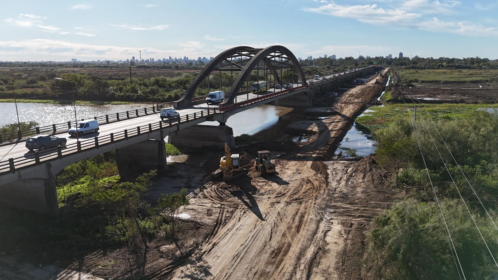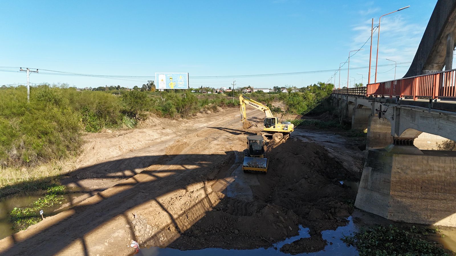 Asimismo, sobre el camino de acceso “continúan los trabajos de movimiento de suelo y el terraplén para la circulación de maquinarias, personal, y se realizan los estudios de suelo en las pilas; se completó el cruce del vado con los tubos correspondientes aprobados; y se está trabajando en el cabezal de Santo Tomé para comenzar con los estudios de suelo en el cauce principal”, concluyó el ministro.