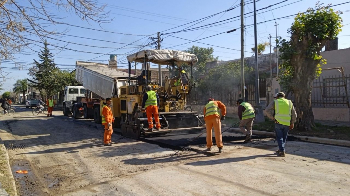 • Por último, la pavimentación de calle Larrea es la obra más avanzada, con un 76,5% de ejecución. Incluye la remoción de cordones, movimiento de suelos, preparación de la subrasante, aplicación de riego asfáltico, pavimento en caliente y nuevos cordones cuneta. También se realizaron vigas de borde, se regularizaron veredas y se ejecutaron desagües domiciliarios.
