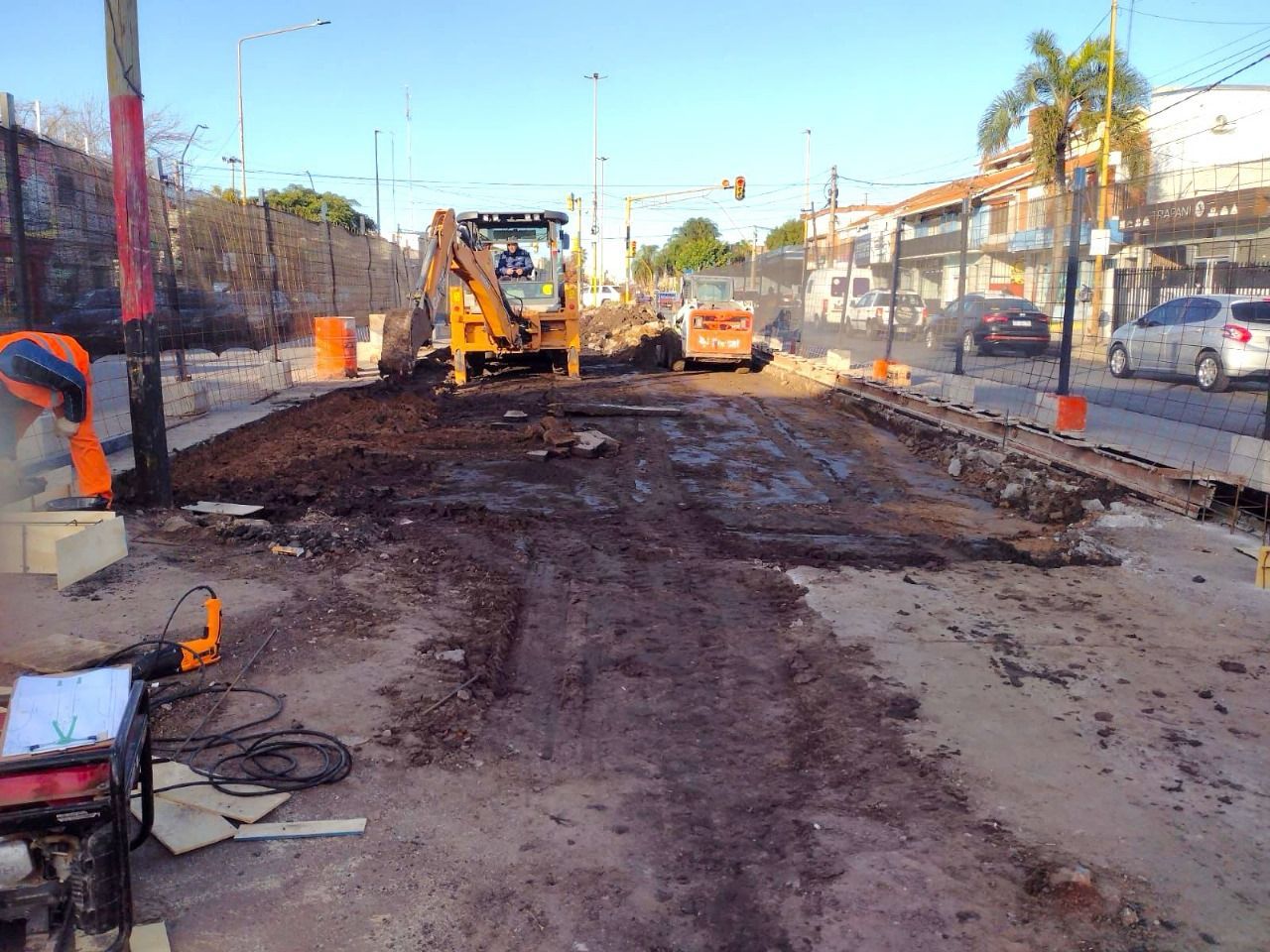• Avenida Aristóbulo del Valle también está en fase inicial: se ejecutan tareas de aserrado y remoción del pavimento, demolición parcial de cordones y excavaciones para instalaciones eléctricas y desagües. Se construyen nuevos cordones de hormigón armado, armaduras y sistemas de drenaje pluvial para evitar anegamientos.