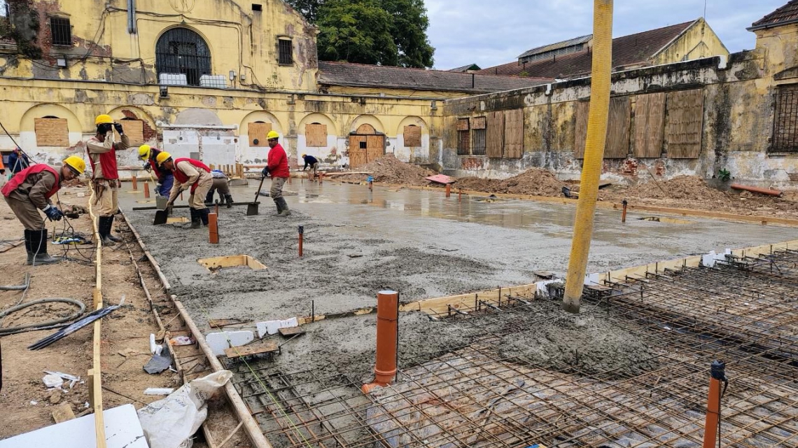 Sobre los avances actuales, precisó que “además del hormigonado de la platea 1, se trabaja en la estructura de la platea 2 y en la instalación de los sistemas pluviales y cloacales. En pocos días, las empresas constructoras -la Unión Transitoria Mundo Construcciones y De Paoli & Trosce- comenzarán con el montaje de los paneles premoldeados en el primer pabellón”.