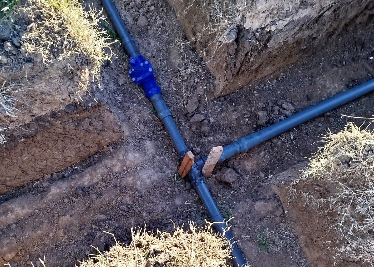 Actualmente ya se instalaron tramos de cañería, se avanzó en las perforaciones y se prepara la cisterna para su montaje.