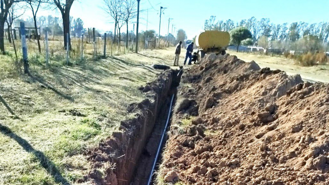 Actualmente ya se instalaron tramos de cañería, se avanzó en las perforaciones y se prepara la cisterna para su montaje.