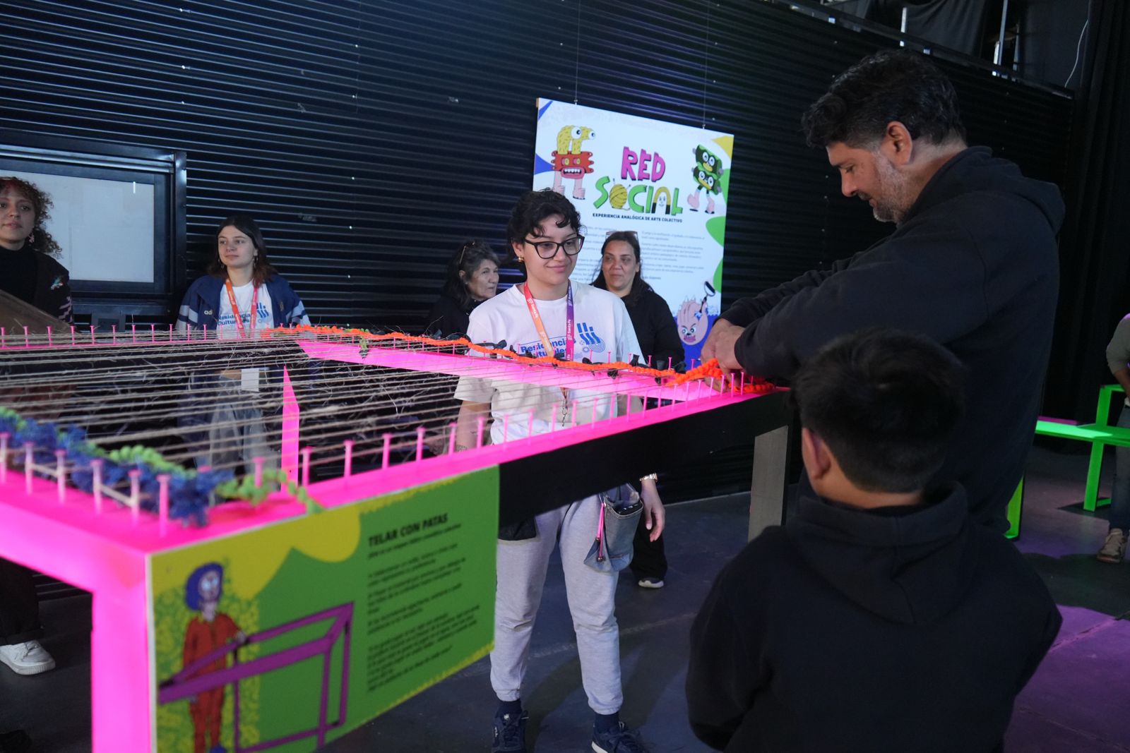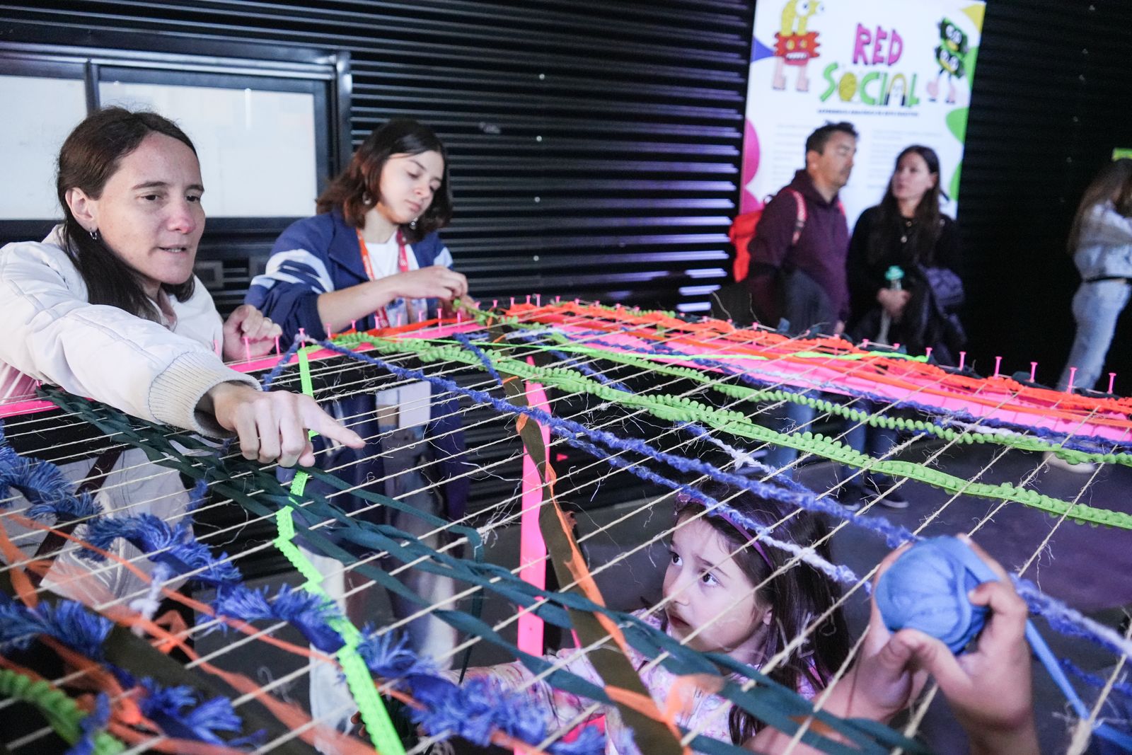 En cada jornada se llevará adelante el Club de Tejido, propuesta pedagógica que busca compartir saberes con la comunidad, brindando herramientas y materiales para que cada persona pueda participar en la creación de la red central de la muestra.