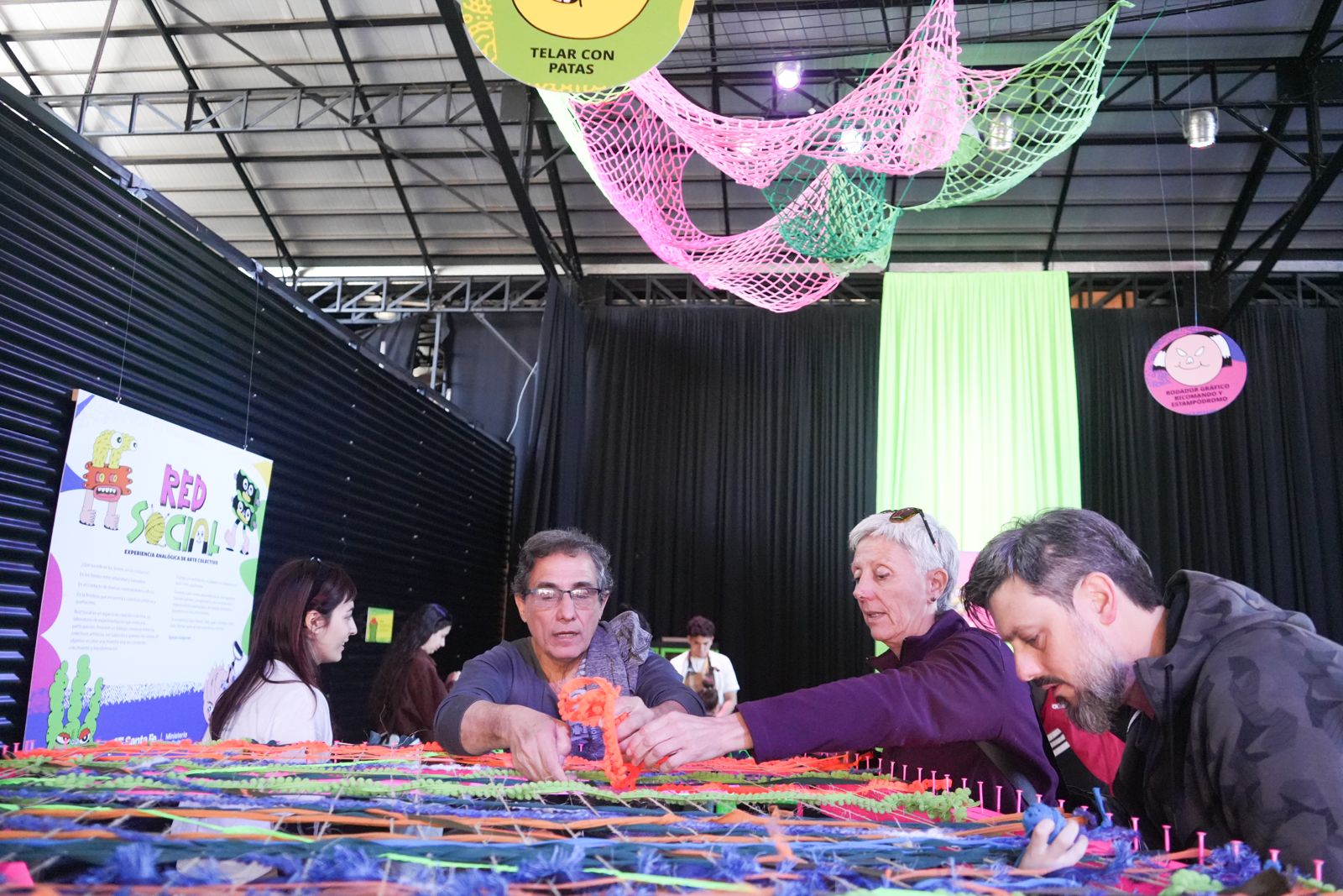 Red Social se ofrece como “una trama humana y creativa que se teje colectivamente” y abre todos los sábados, domingos y feriados, de 15 a 19, con entrada libre y gratuita. La iniciativa, abierta a la comunidad, propone que colectivos artísticos, residentes culturales y público general construyan de manera conjunta una gran red material y simbólica que crecerá a lo largo de los meses como espacio de encuentro y creación. Es, además, un punto de encuentro que invita a las personas a participar, jugar y crear, usando lo gráfico, lo textil y los oficios como excusa.