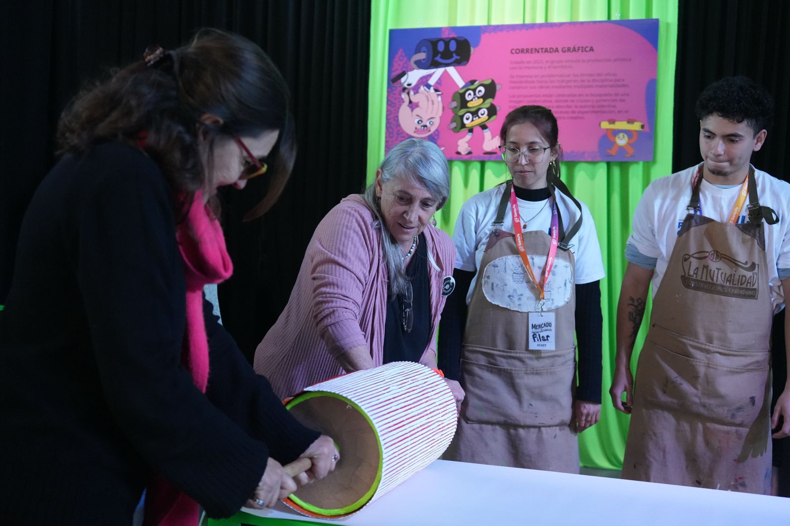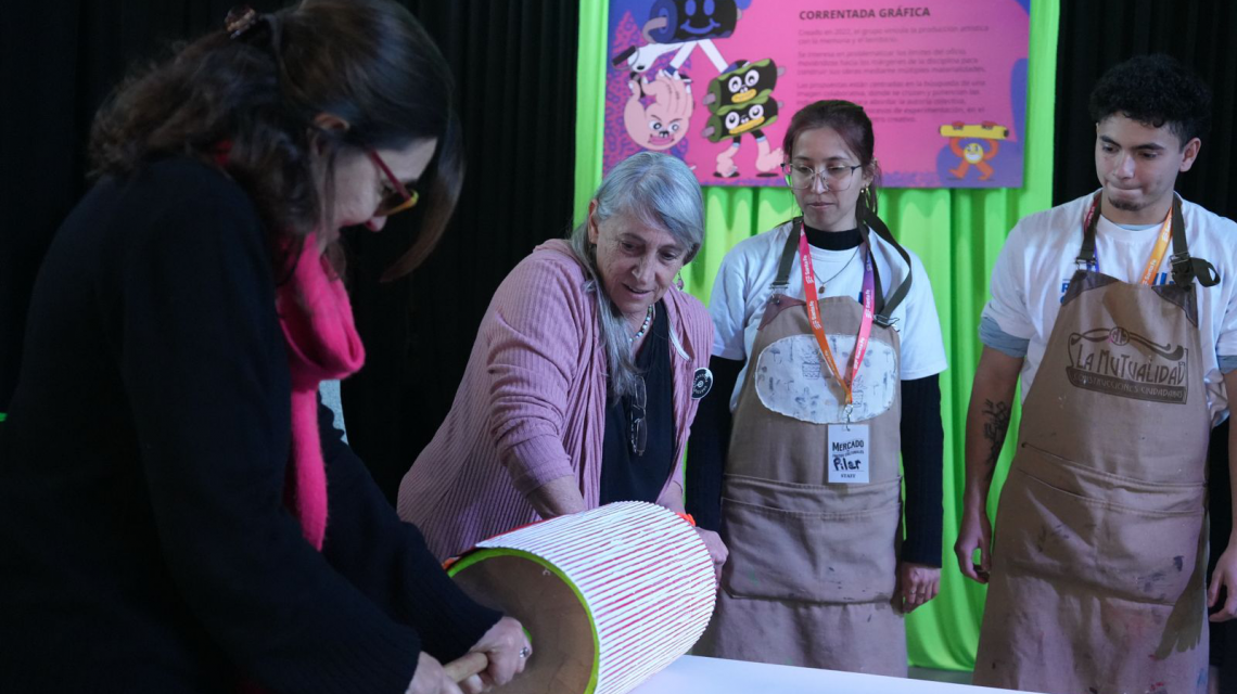 Por su parte, Marcela Peral, de Correntada Gráfica, agregó que “quienes formamos Correntada Gráfica venimos todas del arte impreso, somos artistas visuales, y nos interesaba trabajar cuestiones de memoria y del propio territorio provincial. Nuestro lema es ‘multiplicar es la tarea’, no sólo desde el arte impreso, sino ampliar la experiencia de trabajar desde un colectivo hacia otros colectivos, con el público, con los residentes. Es súper interesante”.