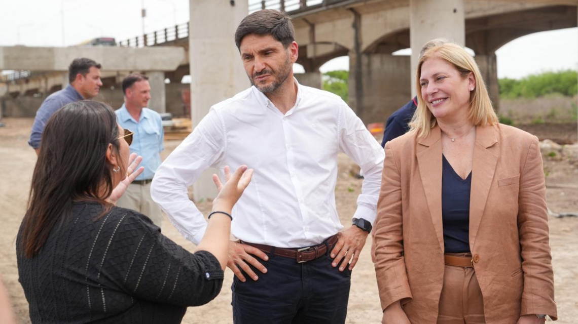 El gobernador y la vicegobernadora de la Provincia de Santa Fe, Maximiliano Pullaro y Gisela Scaglia, recorrieron la obra del Nuevo Puente Santa Fe-Santo Tomé. Entre otras tareas, en esta semana se están construyendo los cabezales que unen las columnas.