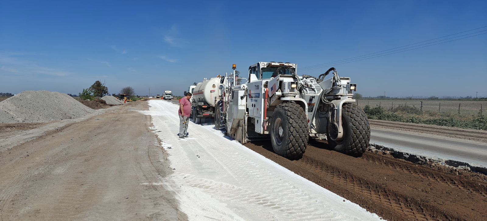 “Por un lado, trabajamos sobre la Cremería, la estamos rehaciendo a cero, y por el otro intervenimos la continuación de la Ruta 10, hacia el sur, hacia Ricardone, construyendo el estabilizado granular, para desviar el tránsito y permitir que se ejecute la obra sin interrupciones”, detalló Enrico.