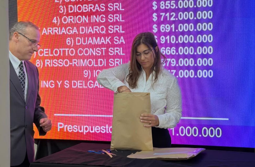 En la oportunidad se presentaron 10 ofertas: MT SRL $ 1.016.500.000; Conylog SRL $ 846.000.000; Diobras SRL $ 855.000.000; Orion Ing SRL $ 712.000.000; UT Arriaga Diarq SRL $ 691.000.000; Duamak $ 910.000.000; Celotto Const SRL $ 666.000.000; Risso Rimolidi SRL $ 879.000.000; ICA SRL $ 747.000.000; e Ing. Y S. Delgado SA $ 749.000.000.