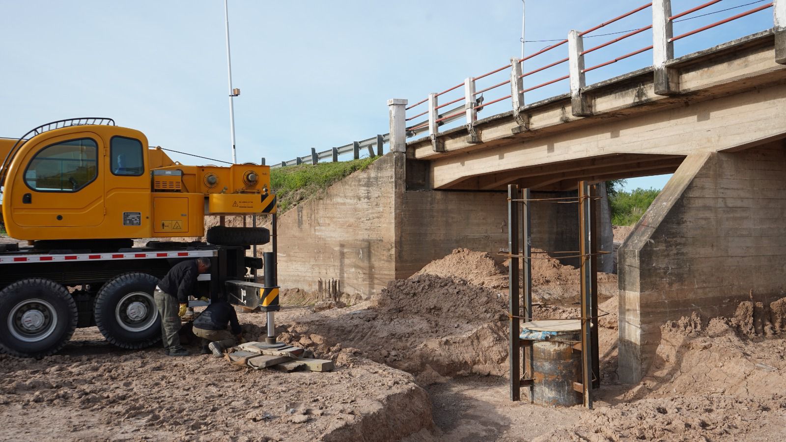 “A los 13,3 metros de ancho entre calzada y banquinas hay que agregarle la defensa metálica, dando un ancho total de unos 14,6 metros, más que el doble del ancho actual. Después de haber hecho los terraplenes temporales para controlar el caudal de los arroyos, empezamos a trabajar en las estructuras del nuevo puente, agregando pilotes de hormigón paralelos a la estructura actual para así poder hacer el ensanchamiento del tablero”, amplió Seghezzo.