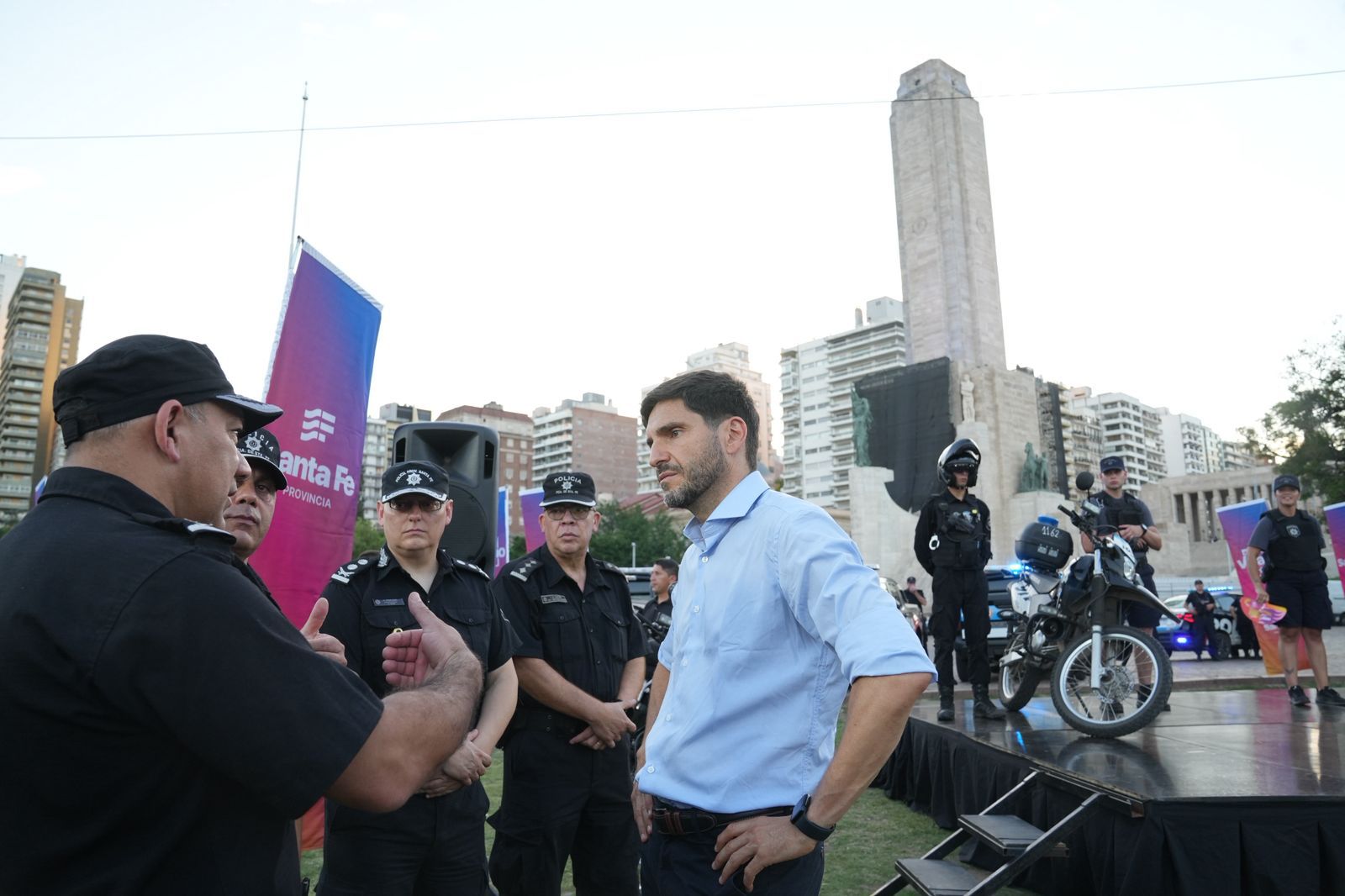 Del acto participaron, entre otros, los ministros de Justicia y Seguridad de Santa Fe, Pablo Cococcioni; de Ambiente y Cambio Climático, Enrique Estevez; el titular de la Agencia Provincial de Seguridad Vial, Carlos Torres; los secretarios de Protección Civil, Marcos Escajadillo; de Seguridad, Omar Pereira; de Análisis Criminal, Esteban Santantino, y el subsecretario de Control y Convivencia de la Municipalidad de Rosario, Ezequiel Brocci, además de legisladores locales y provinciales.