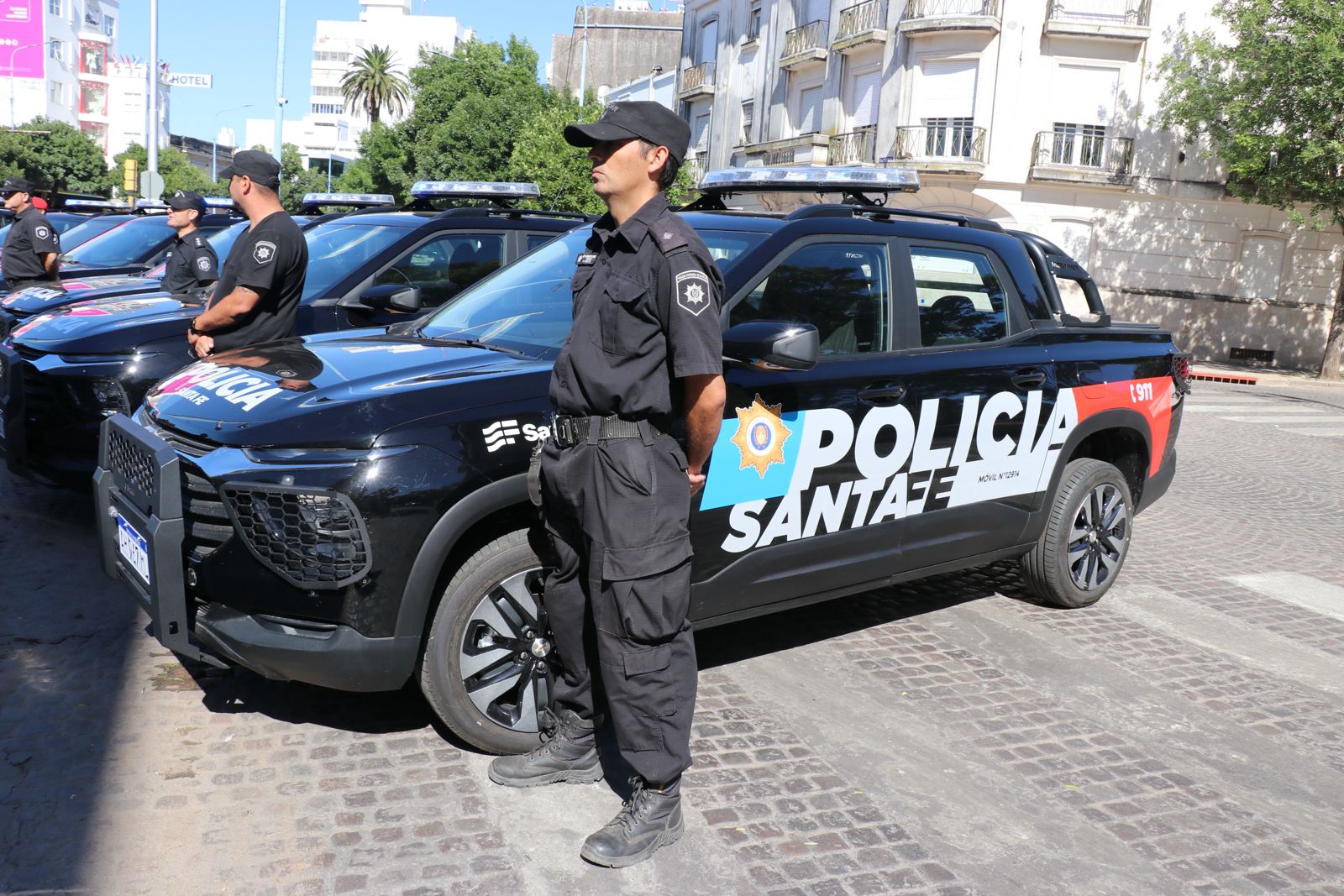 Estos móviles policiales forman parte de las 720 nuevas unidades que adquirió el Gobierno de Santa Fe en el marco de la Ley de Emergencia en Seguridad. En este caso, fueron 18 camionetas Chevrolet Montana, totalmente equipadas para patrullaje, adquiridas por licitación pública. Entre otras características, las nuevas camionetas cuentan con tracción 4x2, paragolpes reforzados y rejas de protección para las luces, equipadas con pantalla táctil, cámara de estacionamiento y sensores.