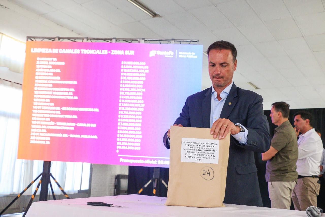 El ministro de Obras Públicas, Lisandro Enrico, encabezó este viernes la apertura de sobres con las ofertas económicas para llevar a cabo la primera etapa de las tareas de limpieza de diferentes Canales Troncales de departamentos del sur provincial.