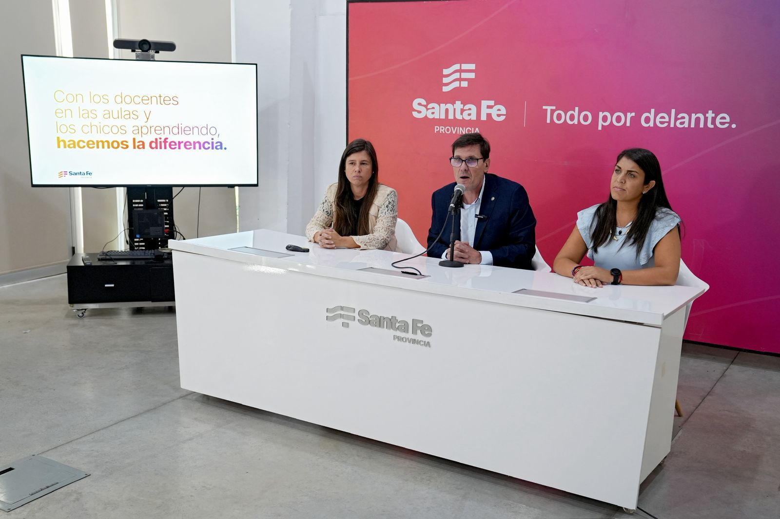 Tras un repaso de cómo quedaron los salarios de los diferentes cargos testigo, Goity afirmó que desde el Gobierno de Santa Fe “tenemos la convicción que la diferencia en educación la hacen los docentes en el aula con los chicos aprendiendo, junto a los equipos directivos comprometidos”, motivo por el cual aseguró que todo lo presentado durante la conferencia “fue presentado como oferta paritaria”, destacando que “no hay nada que hayamos incorporado en cada una de las liquidaciones complementarias que no figure en el acta paritaria”.