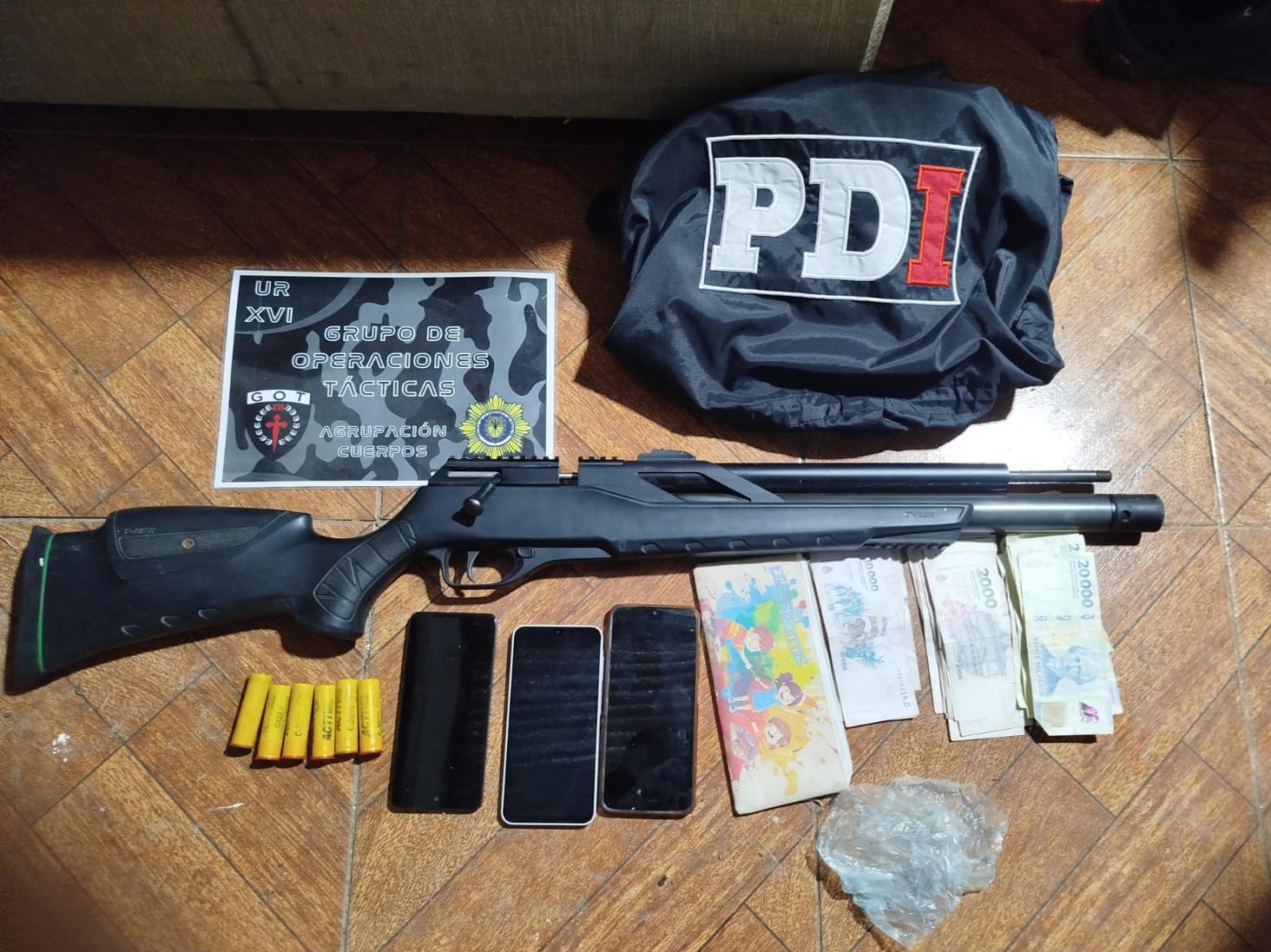 Por disposición de los fiscales intervinientes, los detenidos fueron trasladados a dependencias policiales y puesto a disposición de la justicia competente, tras ser examinados y debidamente identificados.