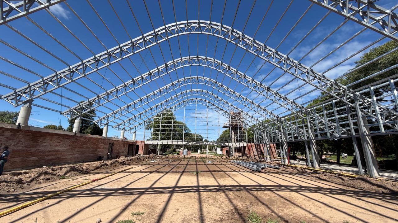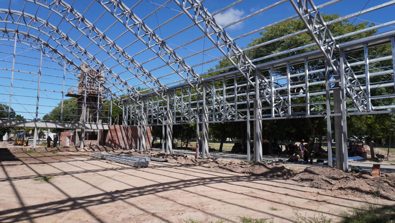 “También, en uno de los laterales de la nave principal, se lleva adelante el apuntalamiento, encofrado y armado de losas y vigas del sector correspondiente a sanitarios, administración y depósito”, detalló Pascualón.
