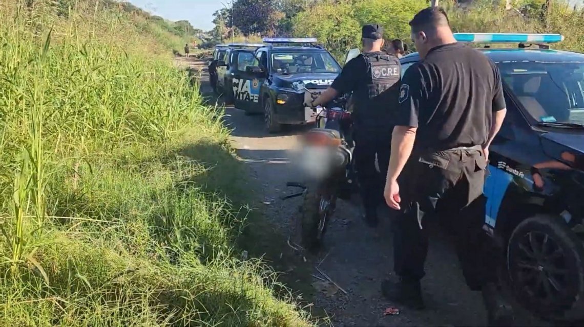 El patrullaje del Comando Radioeléctrico de la Unidad Regional II por la zona de calle Donizetti y las vías ferroviarias permitió establecer que un sospechoso con remera del club Rosario Central y gorra roja había arrojado una motocicleta de 150 cilindrada y se dio a la fuga con dirección hacia avenida Génova.