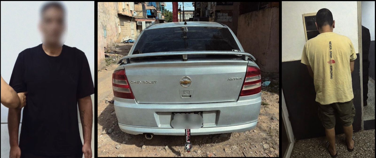 La secuencia continuó con la huida. Los sospechosos fueron detectados mientras corrían y abordaban un automóvil estacionado a pocas cuadras. Se trataba de un Chevrolet Astra, cuyo seguimiento posterior resultó determinante para avanzar en la investigación.