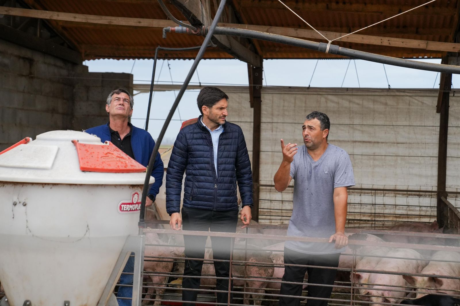 Posteriormente se reunió con productores agropecuarios en el campo de la familia Micucci-Rinaudo, en el distrito Montes de Oca. También fueron afectados por las dos tormentas y sufrieron la pérdida total del galpón donde guardaban las máquinas, que también sufrieron daños.