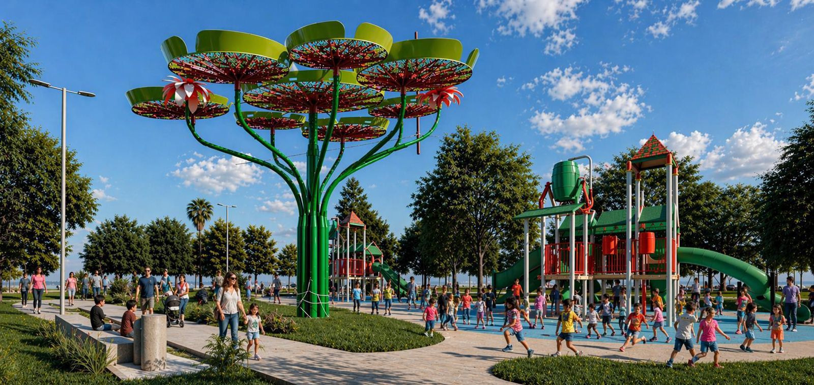 La pileta -de 75 metros de diámetro- será reconvertida en una plataforma multipropósito para su uso fuera de la temporada estival. En el Parque de los Niños se renovarán los juegos infantiles, se incorporarán estructuras de gran escala y se pondrá en valor el anfiteatro, además de mejorar las sendas peatonales.